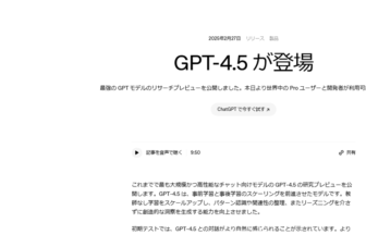 OpenAI、GPT4.5発表、Proユーザーに加えPlusユーザーへの提供も予定