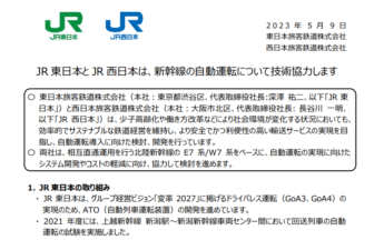 画像:JR東日本より引用JR東日本は2023年5月9日、国内の路線を走る新幹線の自動化に向け、JR西日本と技術協力すると発表しま…