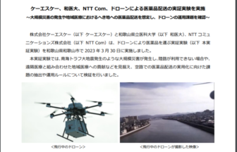 株式会社ケーエスケーは2023年4月18日、同社および和歌山県立医科大学、NTTコミュニケーションズ株式会社の3者で、ドローンに…
