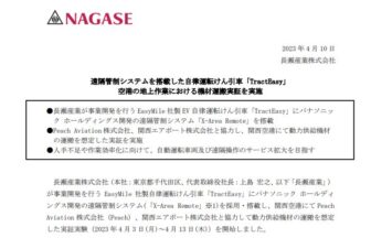 画像:長瀬産業株式会社より引用長瀬産業株式会社は2023年4月10日、関西空港にて遠隔管制システムを利用した自律運転けん引車…
