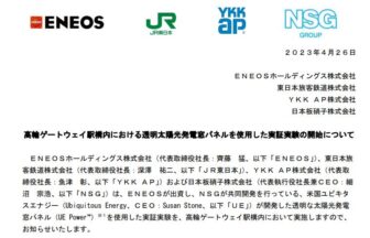 エネオスやJR東日本ら4社、高輪ゲートウェイ駅で太陽光窓の実証実験