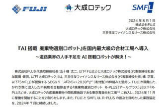 画像:株式会社FUJIより引用株式会社FUJIは2024年8月1日、同社が開発した人工知能による廃棄物選別ロボット「R-PLUS(ア…