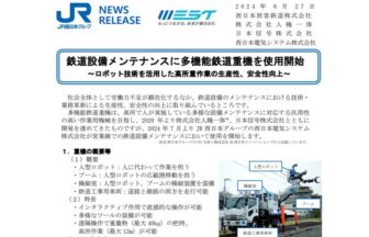 画像:西日本旅客鉄道株式会社より引用西日本旅客鉄道株式会社(JR西日本)は2024年6月27日、従来人が担ってきた高所における…