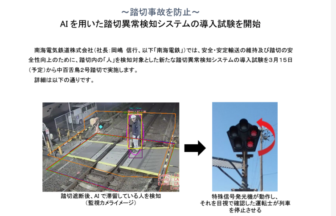 南海電気鉄道株式会社は2024年3月11日、踏切事故を防止するために、AI技術を活用した新しい踏切異常検知システムの試験導入を…