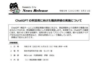 画像:熊本市より引用OpenAI社の生成AI「ChatGPT」が熊本市でも業務検討に入っています。熊本市は以前から職員を対象にしたGP…