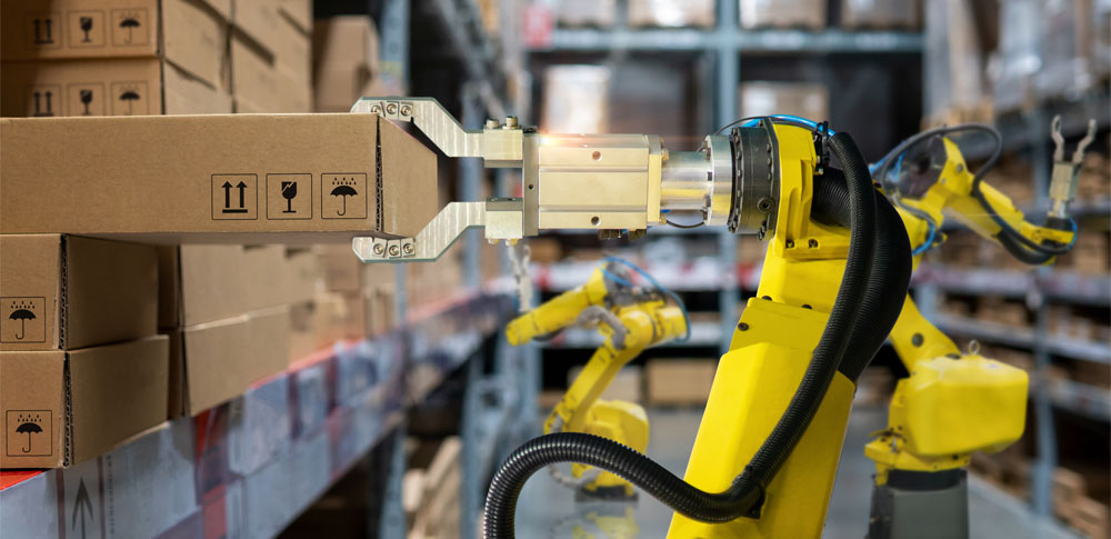 パレタイズロボットは対象物の選別から、詰め込み・積み重ねといった一連のパレタイザ作業が可能です。