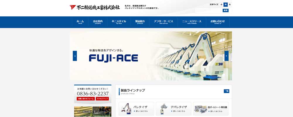 不二輸送機工業株式会社は、垂直搬送機やパレタイズロボットなどの物流機器を取り扱う専門メーカーです。同社のパレタイズロボットの「フジエース」は、ハンドの交換により、形状や質量の異なるさまざまな商品をパレタイズできます。