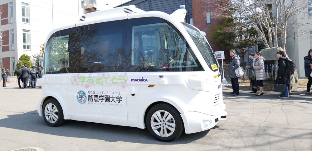 参照電気自動運転バスが、酪農学園キャンパス内を実証実験走行|酪農学園大学