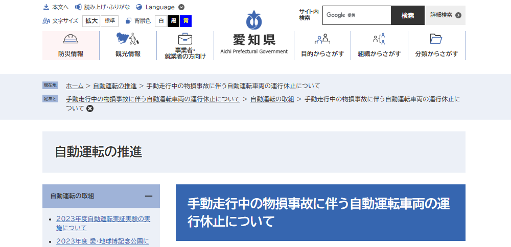 参照手動走行中の物損事故に伴う自動運転車両の運行休止について|愛知県